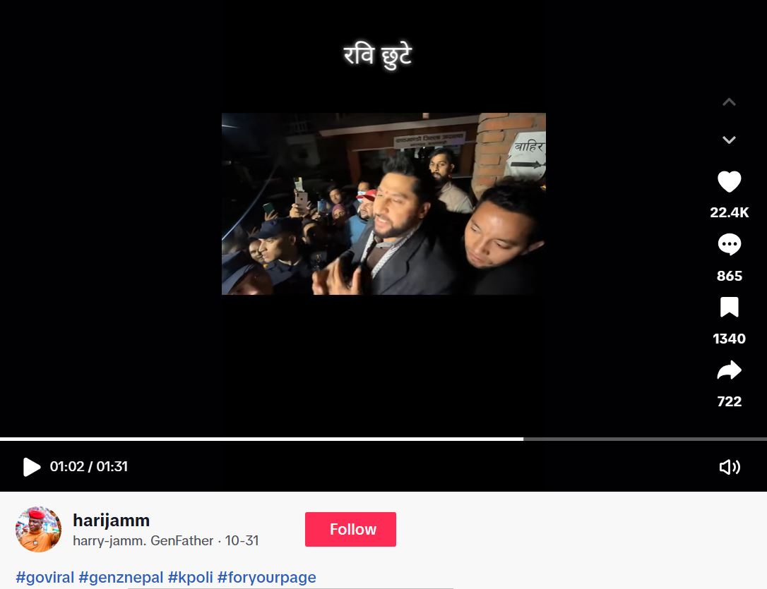 A video allegedly showing former Home Minister and Rastriya Swatantra Party Chairman Rabi Lamichhane, who has been taken into custody for cooperative fraud charges, being released is going viral on TikTok.